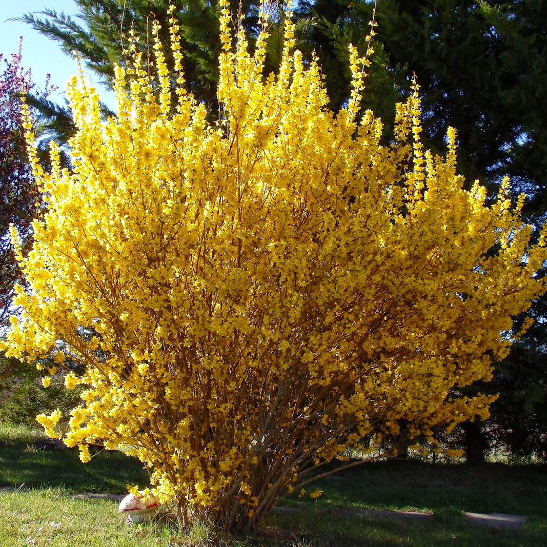 Форзиция средняя (Forsythia x intermedia) – это великолепный кустарник, который станет ярким акцентом в вашем саду. Весной он радует обильным цветением ярко-желтых цветов, которые появляются еще до распускания листьев, создавая эффект солнечного взрыва. Летом кустарник украшен густой зеленью, а осенью его листья приобретают золотисто-бронзовый оттенок.