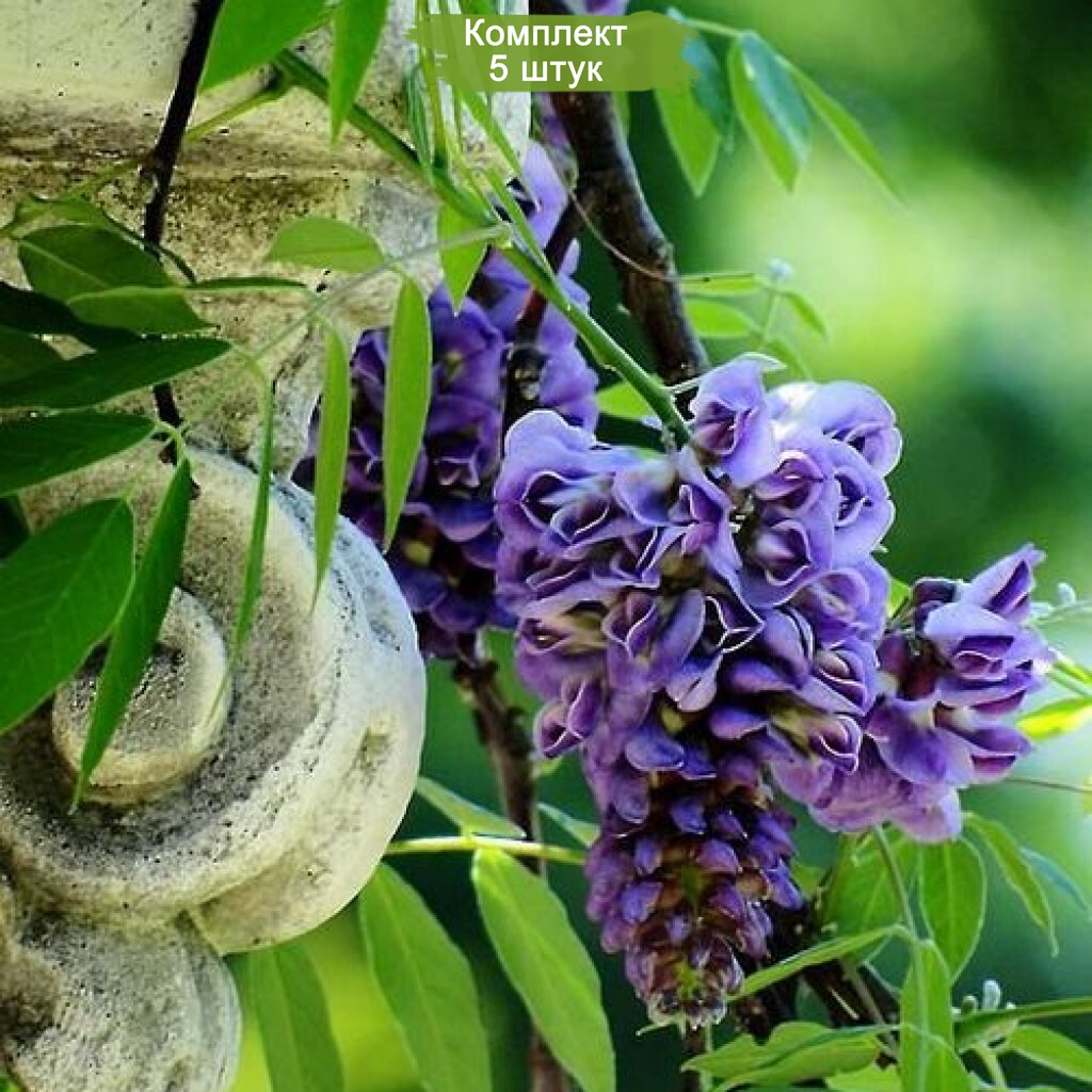 Каждый набор включает 5 здоровых и крепких саженцев, готовых к посадке. Глициния Дабл Блэк Драгон идеально подходит для вертикального озеленения, создания живых изгородей и украшения беседок. Она быстро растет и легко адаптируется к различным условиям, обеспечивая вам минимальные хлопоты и максимальное удовольствие от её цветения.