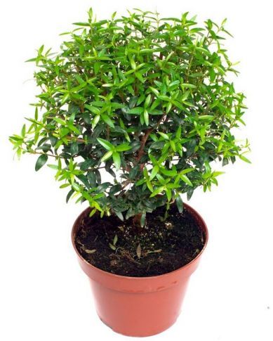 Мирт обыкновенный - это декоративный вечнозеленый кустарник, который в зрелом возрасте достигает высоты 60 см. Его овальные, заостренные листья обладают сильным ароматом и могут использоваться в кулинарии и медицине.